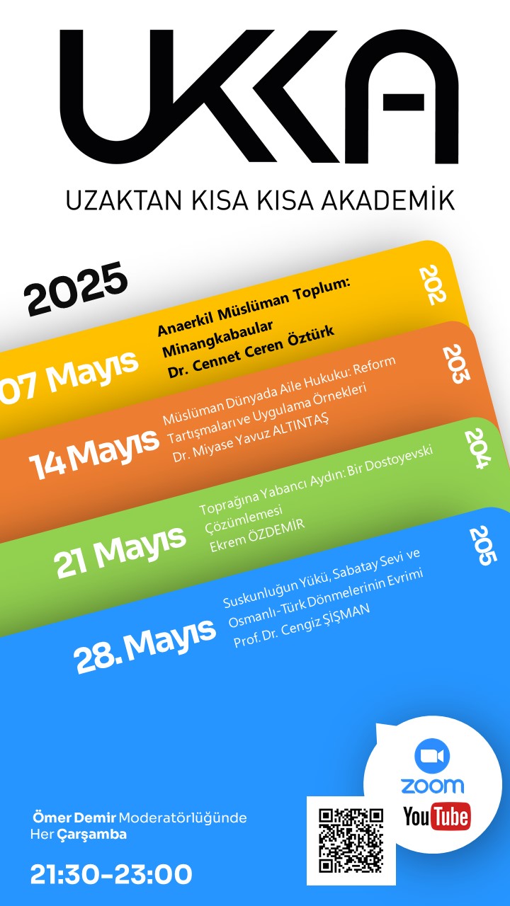 Ömer Demir moderatörlüğünde 8 Nisan 2020 tarihinden itibaren her hafta üzerinde yeni yayın yapılan ya da halen çalışılan bir konunun 45 dk sunum, 45 dk. soru – cevap ve tartışma olarak geçtiği çevrim içi etkileşimli etkinlik olarak sunulmaktadır. Zoom ile eşanlı olarak Youtube kanalımızdan programlarımıza erişebilirsiniz.